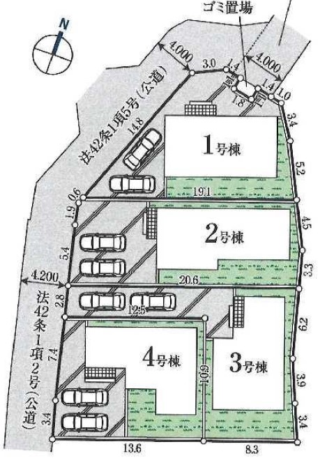 公道 北4m 公道 西4m 公道 南西4.2m |